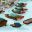 - Next, glue on the black triangles: two between the “ears” in the centre, and three on each side below the “ears”, like in the picture. These are the tiger’s “stripes”.