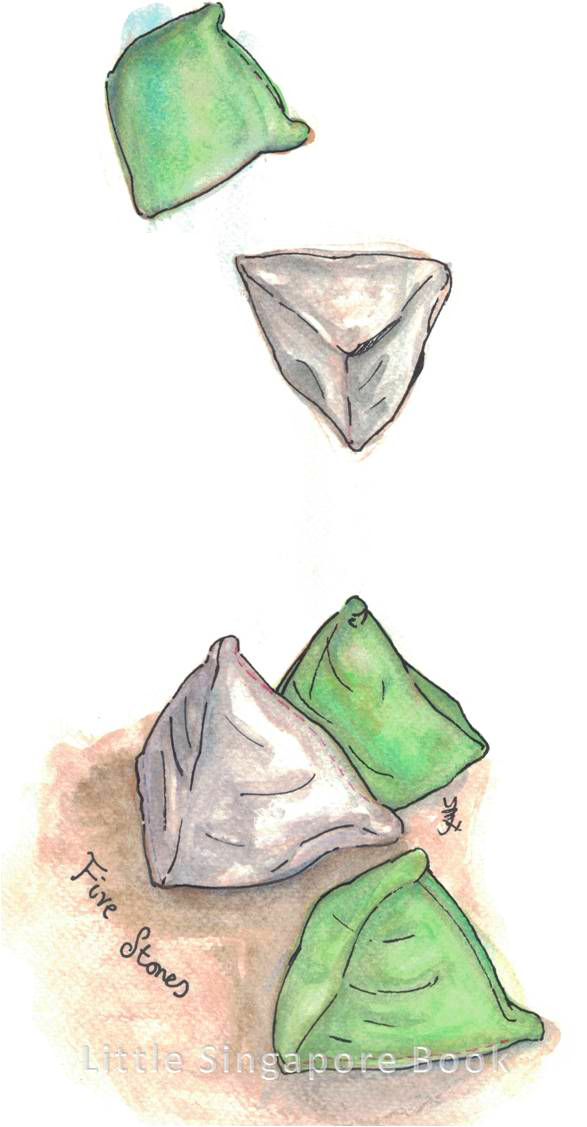 This is one of the most well known games during the early days of Independent Singapore. Almost every school girl would have a set of five stones in her pocket or bag, ready to play with friends.